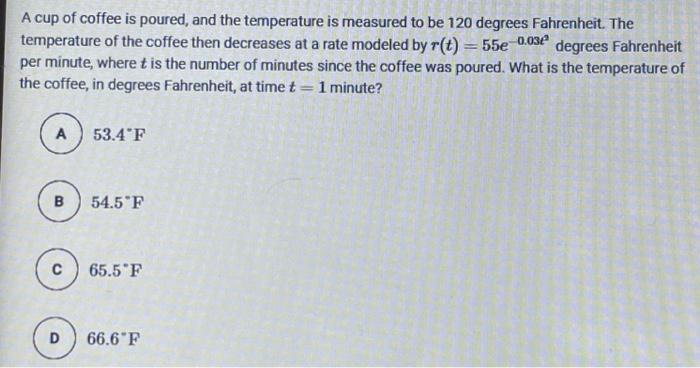 The Temperature Of A Certain Cup Of Coffee 10 Minutes After It Was Poured Was 1 Degrees Fahrenheit Brainly Com